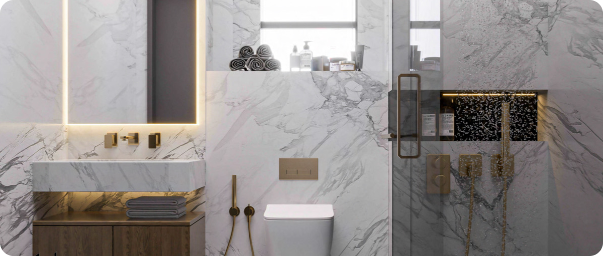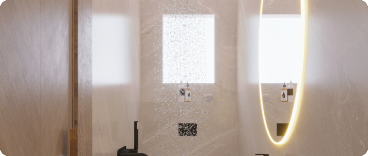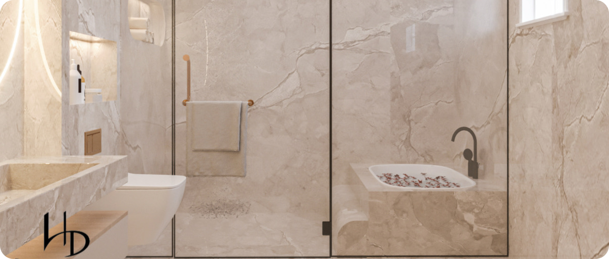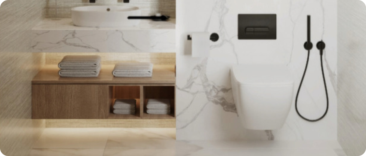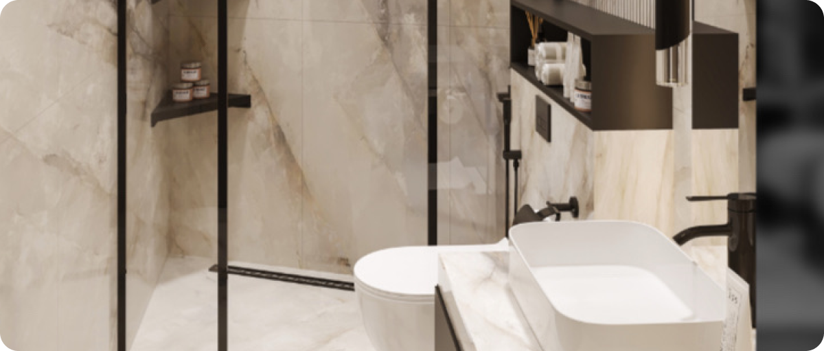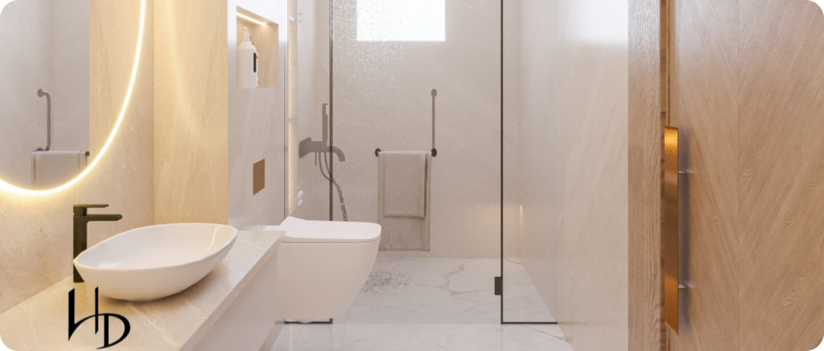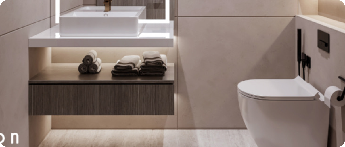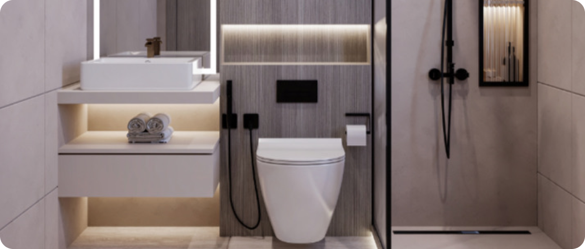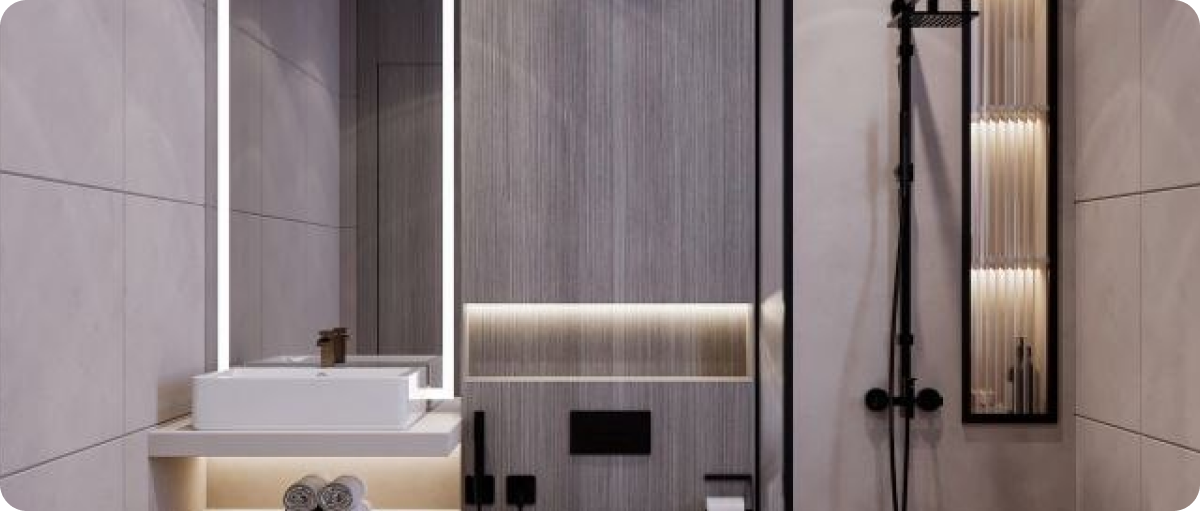 - خزائن وأرفف لتخزين مستلزمات الحمام.