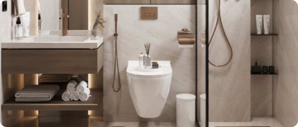 - الأنواع المتوفرة: دورات مياه مودرن، دورات مياه صغيرة عملية، دورات مياه فاخرة