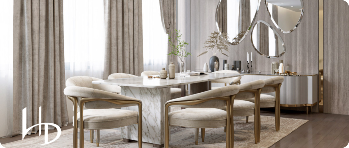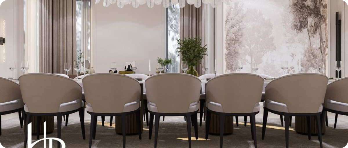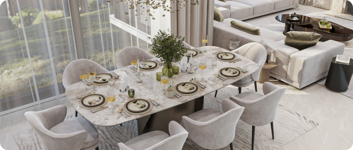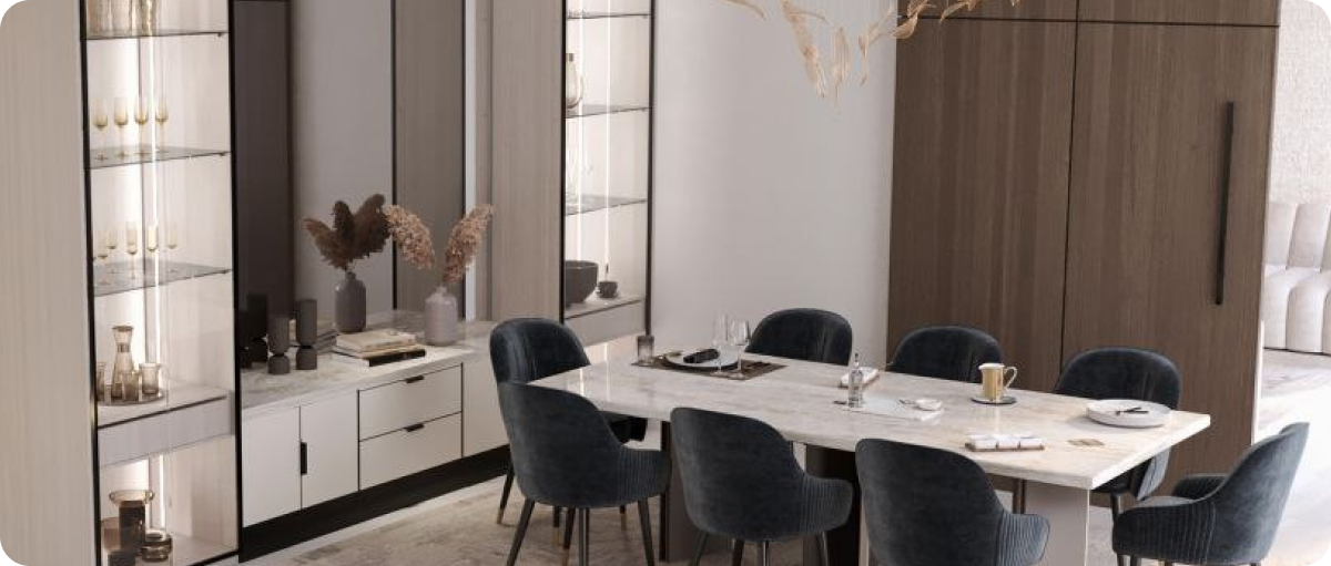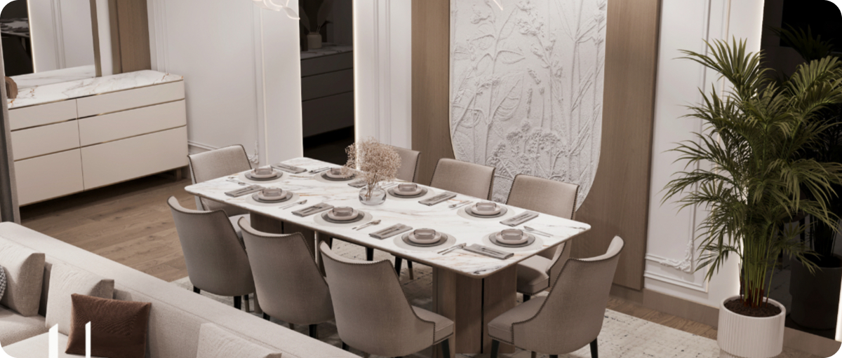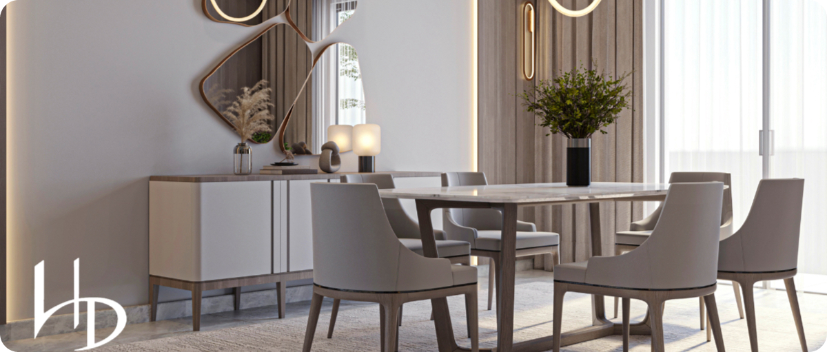 تبي غرفة طعام مرتبة وعصرية تجمع العائلة على أجواء جميلة؟ مع ديكورات غرف طعام فخمة من شركتنا، كل وجبة تصير أمتع، وتصميمها العصري يضيف لمسة فخامة لمنزلك.