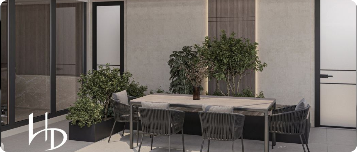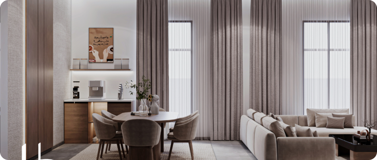 - مساحات واسعة للطاولة والكراسي والتنظيم.