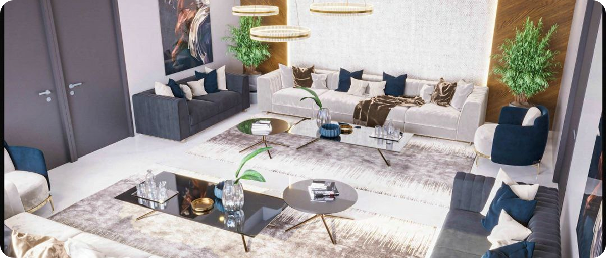 - الأنواع المتوفرة: غرف معيشة مودرن، غرف عائلية كبيرة، غرف صغيرة عملية