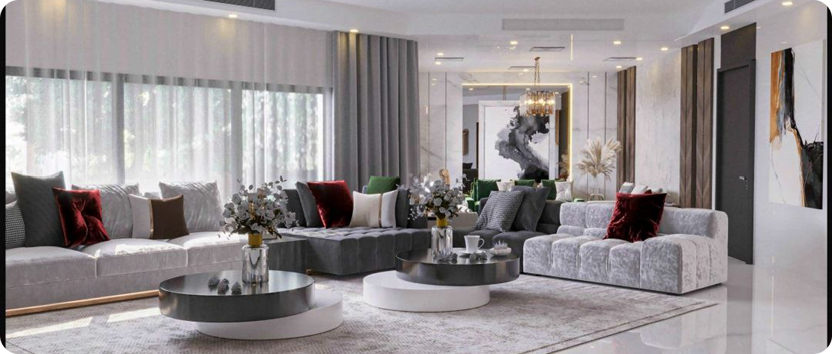 تبي غرفة المعيشة تكون مريحة وعصرية لكل العيلة والضيوف؟ مع تصميم غرف المعيشة من شركتنا،