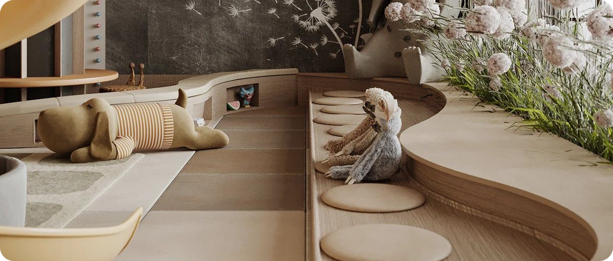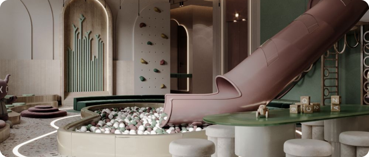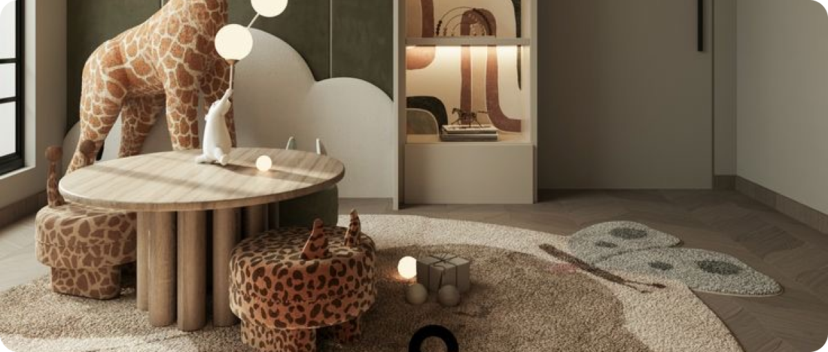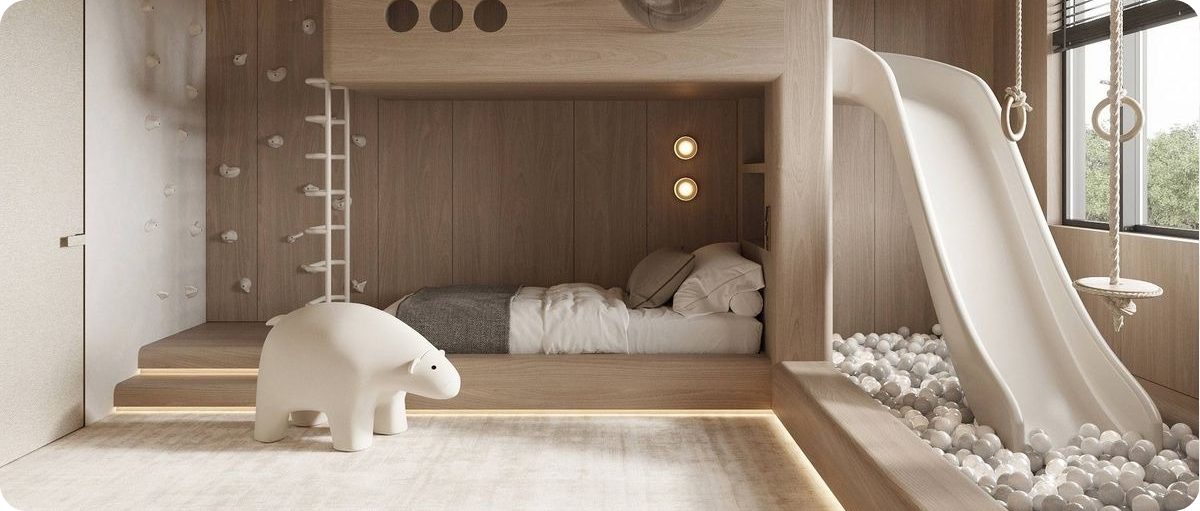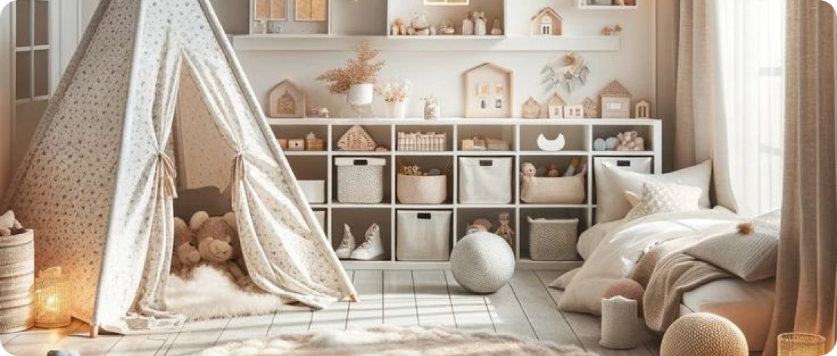 - أسرة وخزائن وأرفف لتخزين الألعاب والملابس.