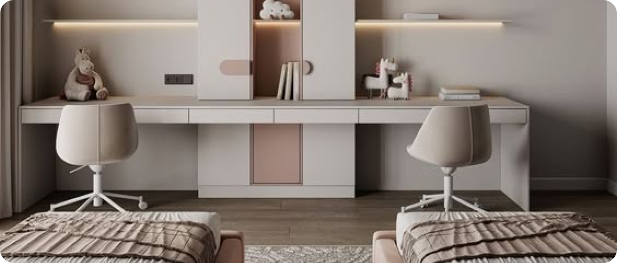 تبي غرفة نوم أطفال مرتبة وآمنة وتناسب كل أعمارهم؟ مع تخطيط غرف النوم من شركتنا، كل شيء منظم، وتصميمها العصري والمرح يضيف لمسة جمالية وعملية لغرفة أطفالك.