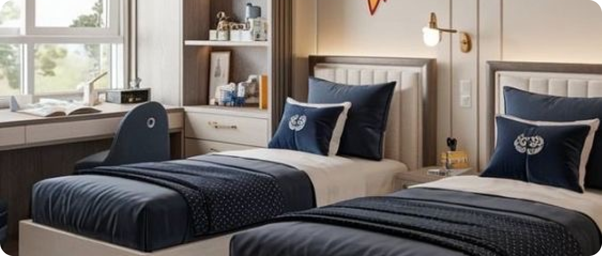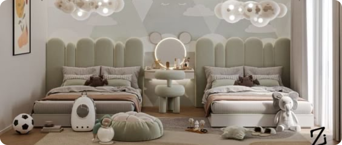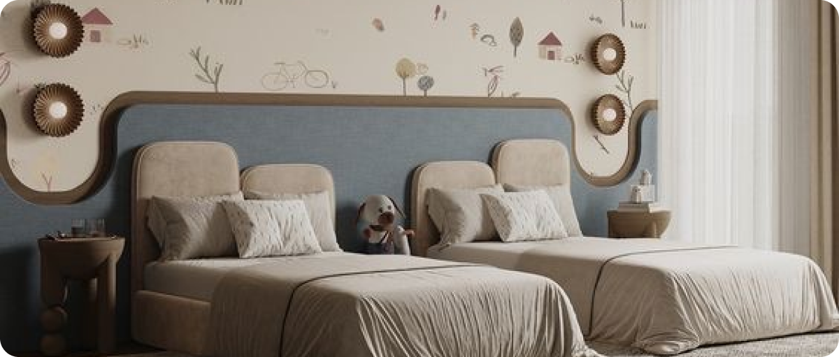 - الأنواع المتوفرة: غرف أطفال مودرن، غرف نوم مزدوجة، غرف نوم صغيرة عملية